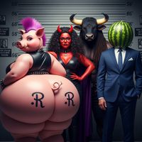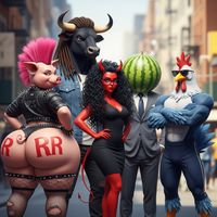 Rump Roast Riot is a high-energy band that delivers a raw and aggressive sound, blending elements of punk, hardcore, and heavy metal. The band features a dynamic lineup of distinct characters: a fiery devil woman on vocals, a punk pig woman working the turntables, a formidable bull man on guitar, and a mysterious watermelon-headed man laying down the beat on drums. Our music is characterized by experimental powerful, distorted guitar riffs, driving rhythms, and intense, shouted vocals, creating a chaotic and rebellious sonic experience. Mixing Trap, Metal, Hip-Hop, Punk and UK Drill, our sound represents "Grill" music!